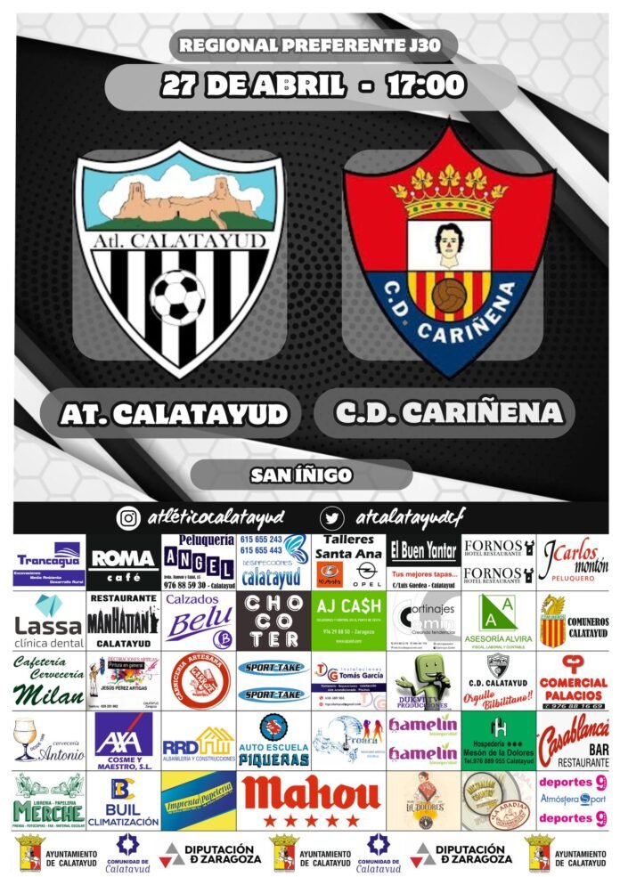 Nueva jornada de liga este próximo domingo en el Estadio Municipal San Iñigo de Calatayud. El conjunto bilbilitano que dirige Sergio Pérez “Willy” recibe al líder del grupo 2 de la Regional Preferente Aragonesa, el CD Cariñena, en una gran fiesta del fútbol.