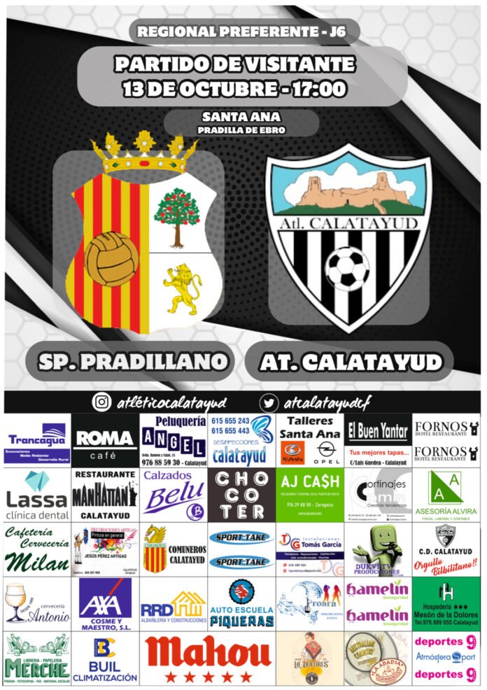 Sexta jornada de liga en la Regional Preferente Aragonesa. El Atlético Calatayud viajará este próximo domingo a Pradilla de Ebro para enfrentarse al Sporting Pradillano en busca de tres nuevos puntos para los bilbilitanos. El encuentro comenzará a las 17h en el campo “Santa Ana”.
