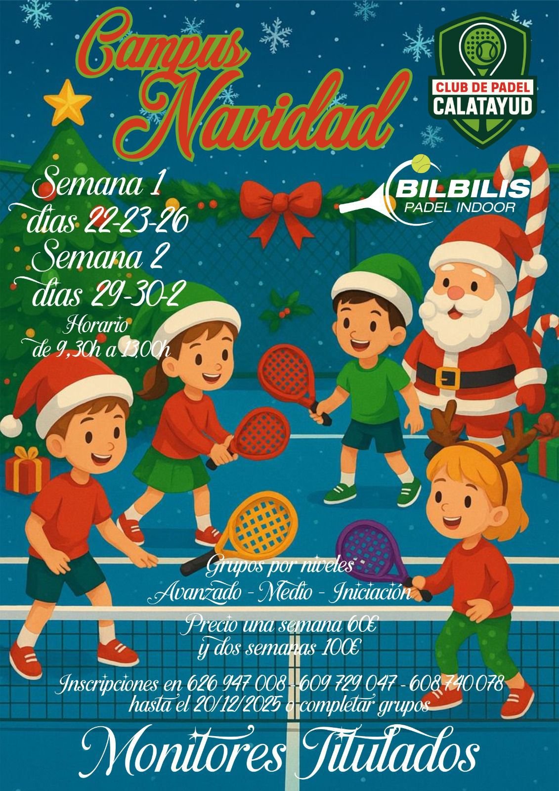 El Club de Padel Calatayud, en colaboración con Bilbilis Padel Indoor, ha organizado su tradicional Campus de Navidad, una actividad pensada para que los más jóvenes disfruten de las vacaciones practicando este deporte.