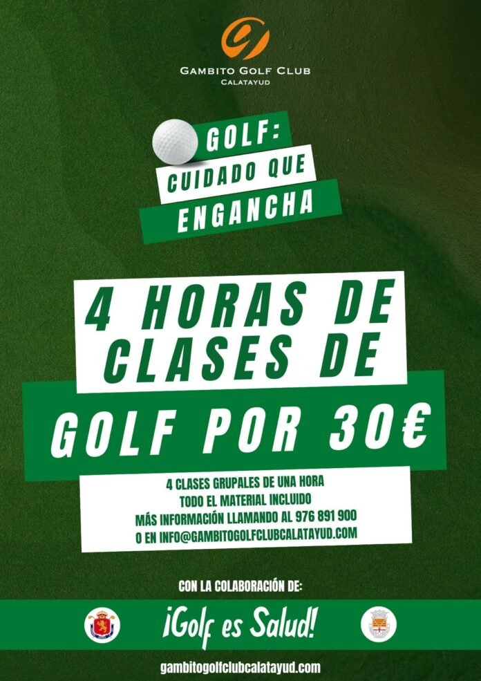 RESPUESTA: Pues ponemos en marcha esta campaña para dar a conocer los beneficios de la práctica de este deporte, con cursos de iniciación para personas de todas las edades. En Gambito Golf Club Calatayud ofrecemos la oportunidad de iniciarse en este deporte por tan solo 30 € / 4 clases de una hora de duración cada una. Es decir, sale cada hora a 7,5 €, material y bolas incluido. Son clases en grupo de hasta 6 personas para que la experiencia resulte más amena.