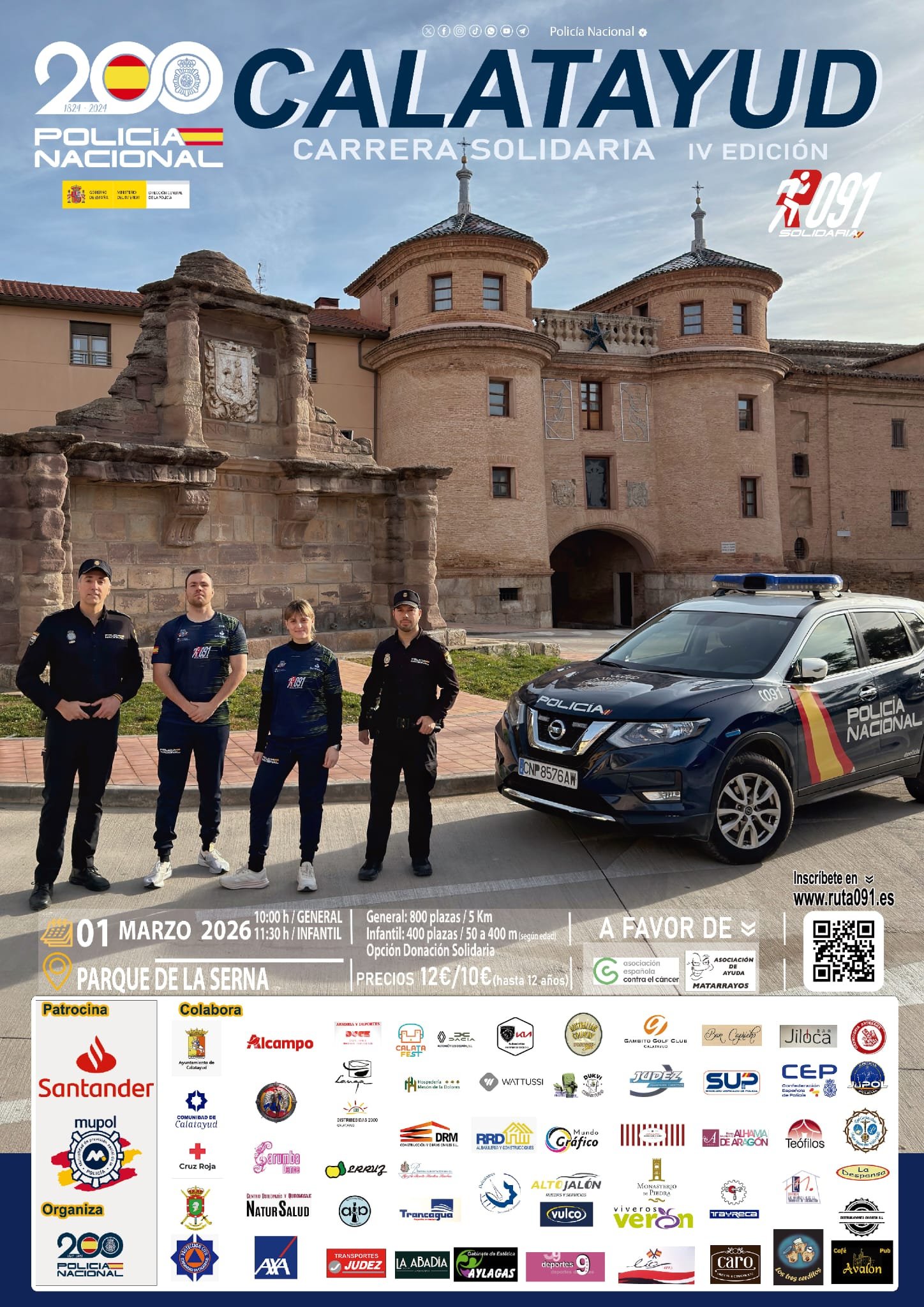 La ciudad de Calatayud se prepara para una jornada donde el deporte y el compromiso social caminarán de la mano. En el marco de la celebración del bicentenario de la Policía Nacional, se ha anunciado oficialmente la apertura de inscripciones para la IV Edición de la Carrera Solidaria Ruta 091, un evento que ya se ha consolidado como una cita imprescindible en el calendario bilbilitano.