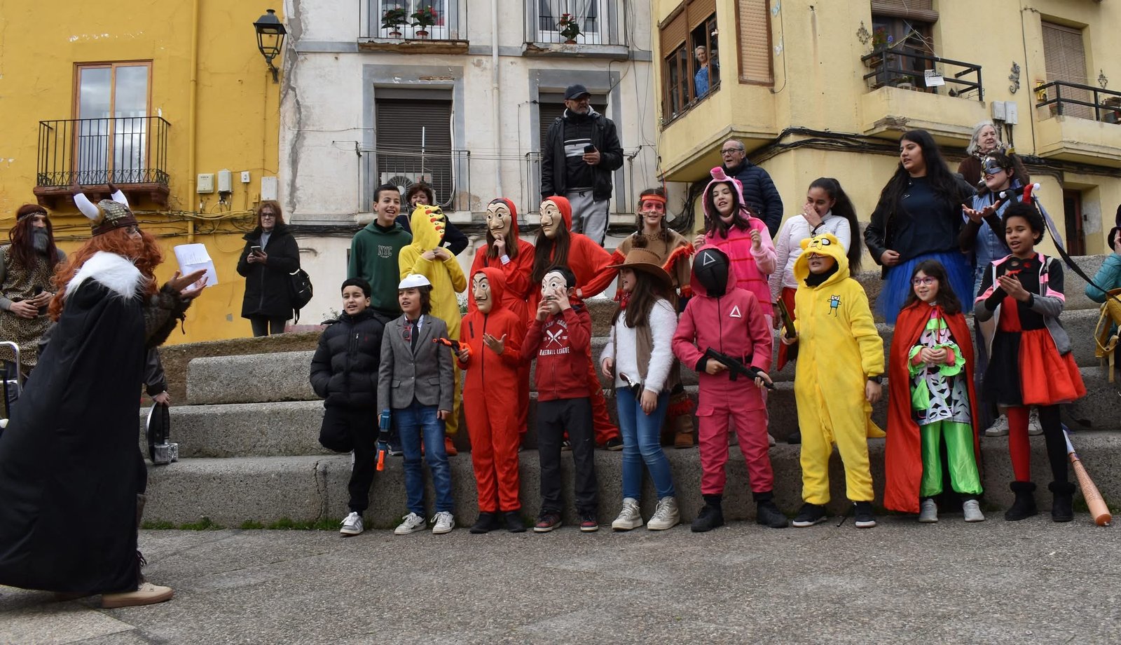 La jornada comenzó con un vibrante recorrido carnavalero que transformó las calles en un río de disfraces y entusiasmo. Acompañados en todo momento por familiares y vecinos, los escolares desfilaron hasta la plaza de la Leña, donde tuvo lugar uno de los momentos más memorables de la mañana. Por primera vez, el alumnado de 6º de Primaria tomó el protagonismo absoluto al interpretar una chirigota preparada con gran dedicación, sorprendiendo a los asistentes con su ingenio y dotes musicales.