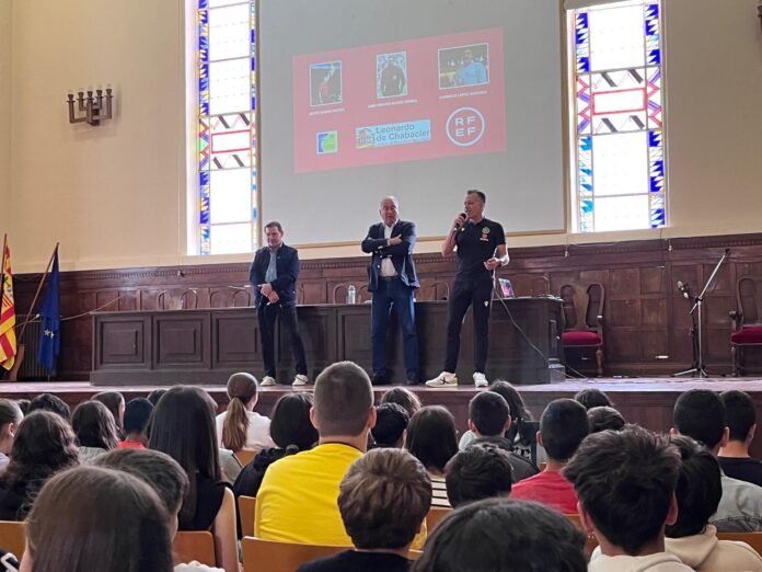Este jueves el alumnado de 2º de la ESO del IES Leonardo de Chabacier de Calatayud tuvo la oportunidad de participar en una enriquecedora charla divulgativa sobre el arbitraje en el fútbol, contando con la presencia de invitados de primer nivel vinculados a la Real Federación Española de Fútbol (RFEF).
