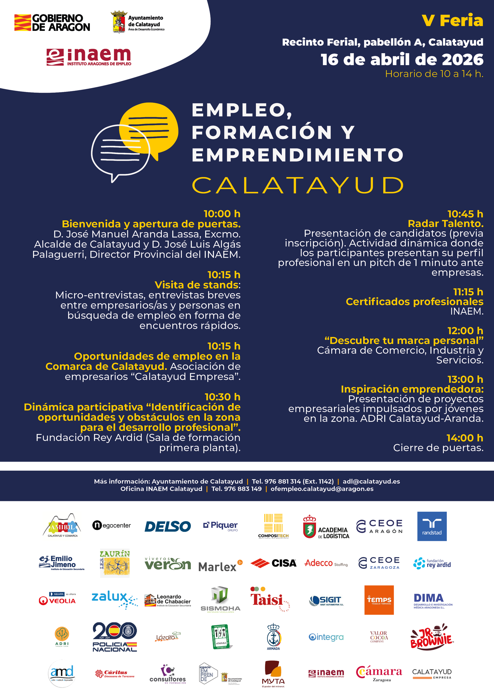 Calatayud volverá a convertirse en punto de encuentro entre talento, empresas y emprendimiento con la celebración de la próxima Feria de Empleo, Formación y Emprendimiento 2026, que tendrá lugar el próximo 16 de abril en el Recinto Ferial. Es una cita ya consolidada en la ciudad que este año llegará con importantes novedades y un enfoque renovado para seguir impulsando el desarrollo profesional en la comarca.