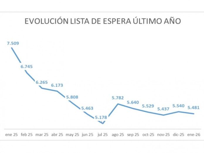 La lista de espera quirúrgica de más de 180 días a 31 de enero de 2026 se sitúa en 5.481 pacientes con más de 180 días en espera. Fruto del plan de dinamización de actividad quirúrgica emprendido por el Departamento de Sanidad en enero de 2025, la lista de espera se ha reducido en 2.028 pacientes en términos interanuales, es decir, un descenso del -27%. Se trata de cifras muy superiores a los objetivos marcados en el propio plan de dinamización.