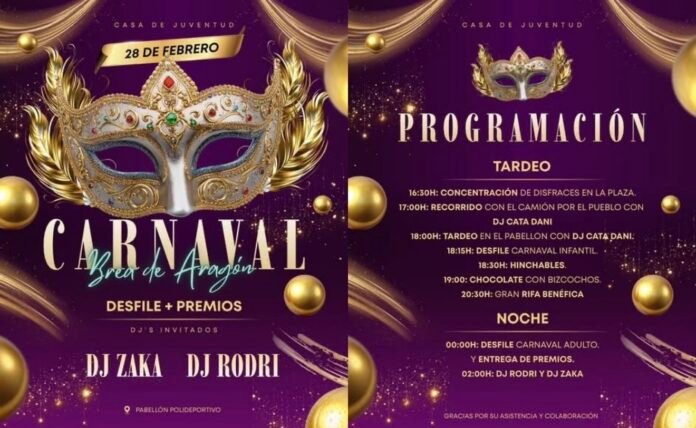 La localidad de Brea de Aragón ha presentado oficialmente su programación para el próximo sábado 28 de febrero, una fecha marcada en el calendario para celebrar el Carnaval Breano 2026. Organizado por el Ayuntamiento y la Casa de Juventud, el evento promete una jornada ininterrumpida de actividades que combinarán la tradición, el ocio familiar y la vida nocturna.