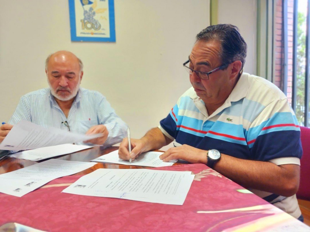 Gerardo Bernal, presidente de la Federación de Interpeñas y el alcalde de Calatayud, José Manuel Aranda, han firmado el convenio de colaboración para estas próximas fiestas de San Roque que comienzan mañana, con el tradicional Vino de Honor y la presentación de los locales de las peñas.