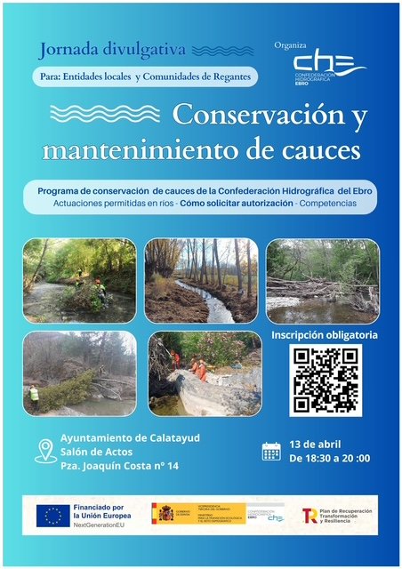 La Confederación Hidrográfica del Ebro va a celebrar una jornada divulgativa sobre la conservación y el mantenimiento de los cauces de los ríos.  Con el fin de aproximar esta información a los interesados de la Comarca Comunidad de Calatayud, se ha contado con la colaboración del Ayuntamiento bilbilitano.