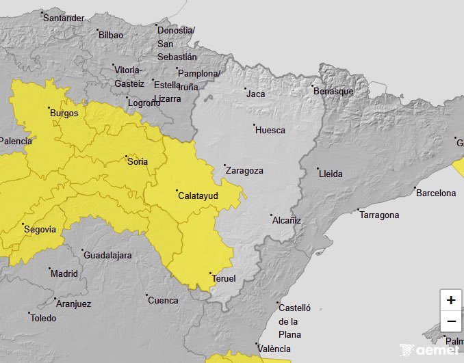 La Agencia Estatal de Meteorología (AEMET) ha decidido cancelar el aviso amarillo por nevadas en el Pirineo oscense para hoy, aunque mantiene avisos amarillos por nieve para esta tarde, entre las 15.00 y las 23.59 horas, en la Ibérica zaragozana y en Albarracín y Jiloca (Teruel), con la cota descendiendo y nevadas previstas por encima de los 800 metros.