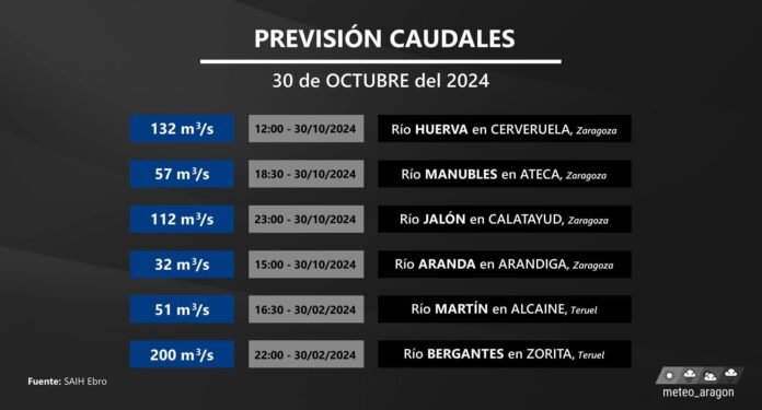 Las precipitaciones que se esperan esta madrugada en el sistema Ibérico, pueden dar lugar a importantes crecidas en muchos ríos de la zona, destacando sobre todo las cuencas del Bergantes, Huerva y el Jalón, donde estas pueden ser más importantes. Así lo informa Meteo Aragón a través de sus canales oficiales.