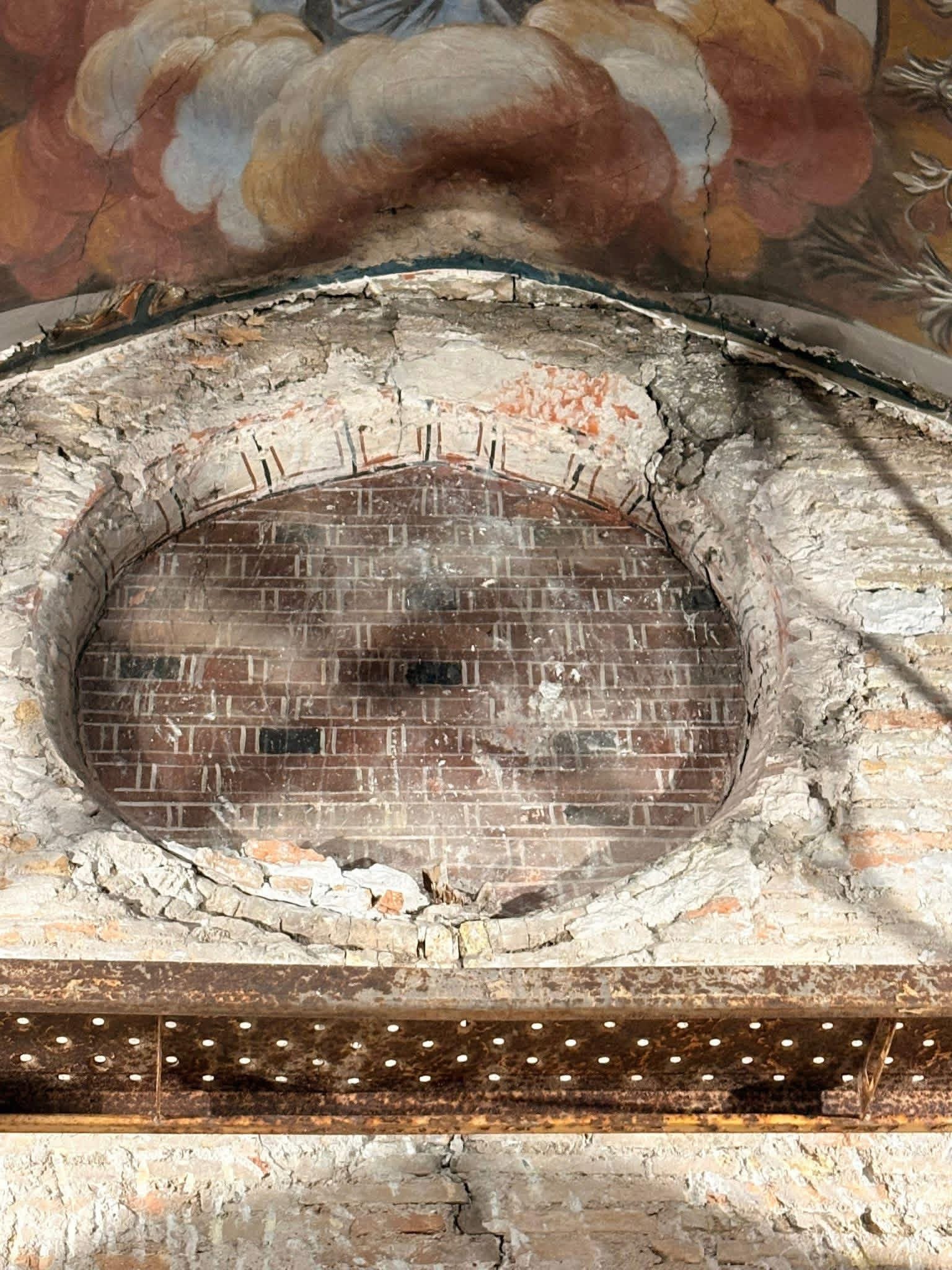 Su ejecución incluyó la decoración de los muros con arquitecturas fingidas y un retablo de trampantojo. Ha sido al retirar este elemento pictórico posterior cuando la decoración original del antiguo templo medieval ha quedado al descubierto para el estudio y la admiración.