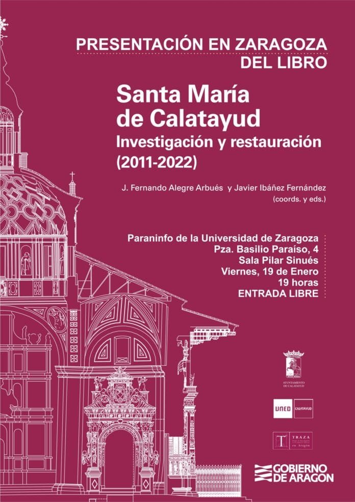 “Santa María de Calatayud, investigación y restauración 2011-2022”, es el título del libro que este viernes 19 a las 19.00 horas se presenta en el Paraninfo de la Universidad de Zaragoza.  Esta obra coordinada y editada por el arquitecto Fernando Alegre Arbués, y por Javier Ibañez, catedrático de Historia del Arte, agrupa y ordena toda la información que ha arrojado la restauración llevada a cabo en este monumento durante once años.