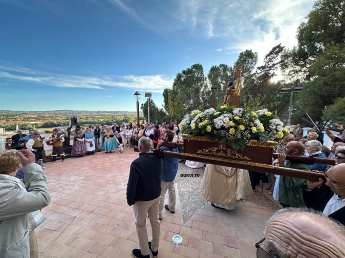 Una estrella y la campana se han dibujado en el centro de esta plaza que ha cambiado su aspecto en base a una propuesta que en todo momento se ha coordinado con la Esclavitud de Nuestra Señora la Virgen de la Peña. El obispo de la Diócesis de Tarazona, monseñor Vicente Rebollo, asistía a este acto al final del recorrido de la procesión de la patrona desde la iglesia de San Andrés hasta su hogar, una vez terminadas las fiestas en su honor.