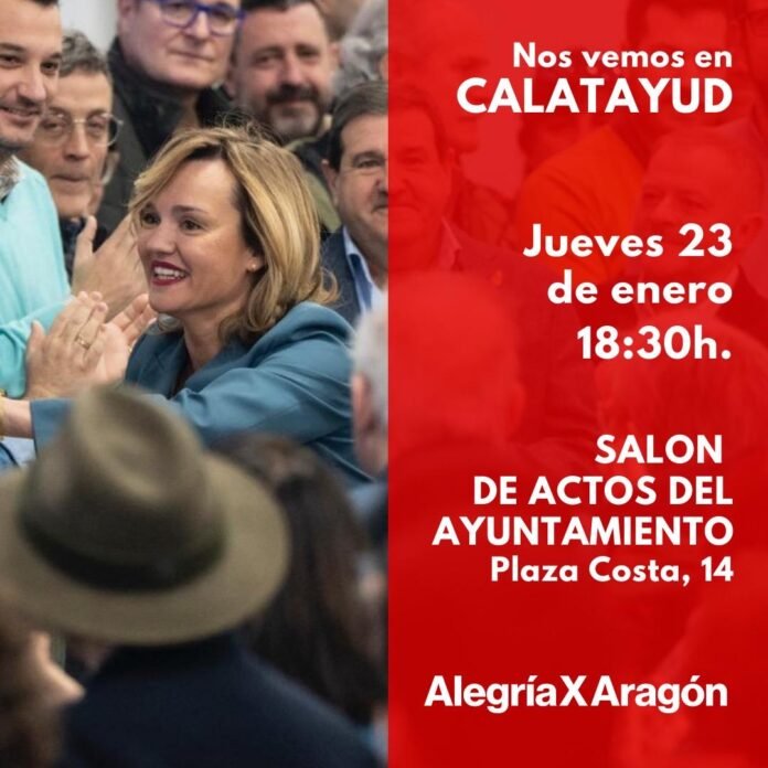 Su recorrido lo finalizará en Calatayud. Será a partir de las 18:30h, cuando la ministra y portavoz Pilar Alegría se reuna con la militancia bilbilitana y de la comarca Comunidad de Calatayud en el Salón de Actos del Ayuntamiento bilbilitano, en la Plaza Joaquín Costa.