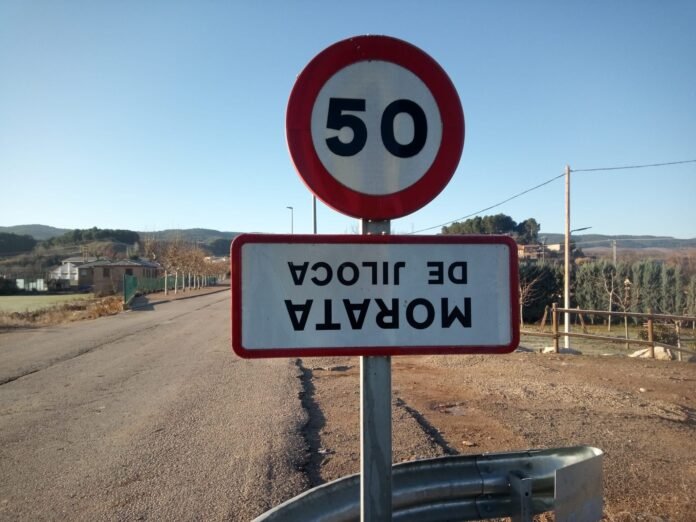 Ayer llegaba también a la Comarca Comunidad de Calatayud y en concreto, a la localidad de Morata de Jiloca, donde sus dos carteles aparecían girados.