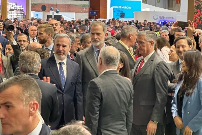 Durante la visita de SS. MM los Reyes al stand de Aragón, el presidente les ha explicado el contenido del pabellón, las propuestas turísticas que se exponen este año y, además, ha invitado a Felipe VI a que a esquiar a lo largo de 2025 en la Comunidad: “Si vuelve a esquiar a Aragón, verá que hemos invertido 70 millones de euros en innivación y que, por lo tanto, aunque las inclemencias del tiempo no siempre acompañen, ahora fabricamos nieve y hacemos que muchos más turistas vengan en mejores condiciones a nuestras estaciones”.