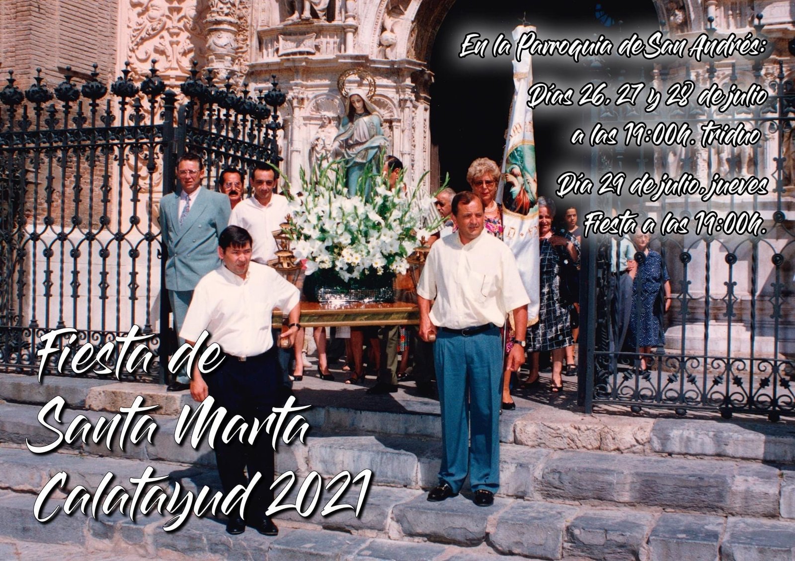 La Parroquia de San Andrés de Calatayud no deja pasar la Fiesta de Santa Marta. No habrá ruta de bares, ni discomovil, pero sí fiesta religiosa.
