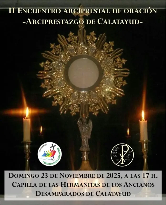 Calatayud acogerá el segundo Encuentro Arciprestal de Oración esta misma tarde a partir de las 17:00 horas. Este significativo evento se llevará a cabo en la Capilla de las Hermanitas de los Ancianos Desamparados de Calatayud y se enmarca dentro del camino espiritual de preparación para el Jubileo 2025 – Peregrinos de Esperanza.