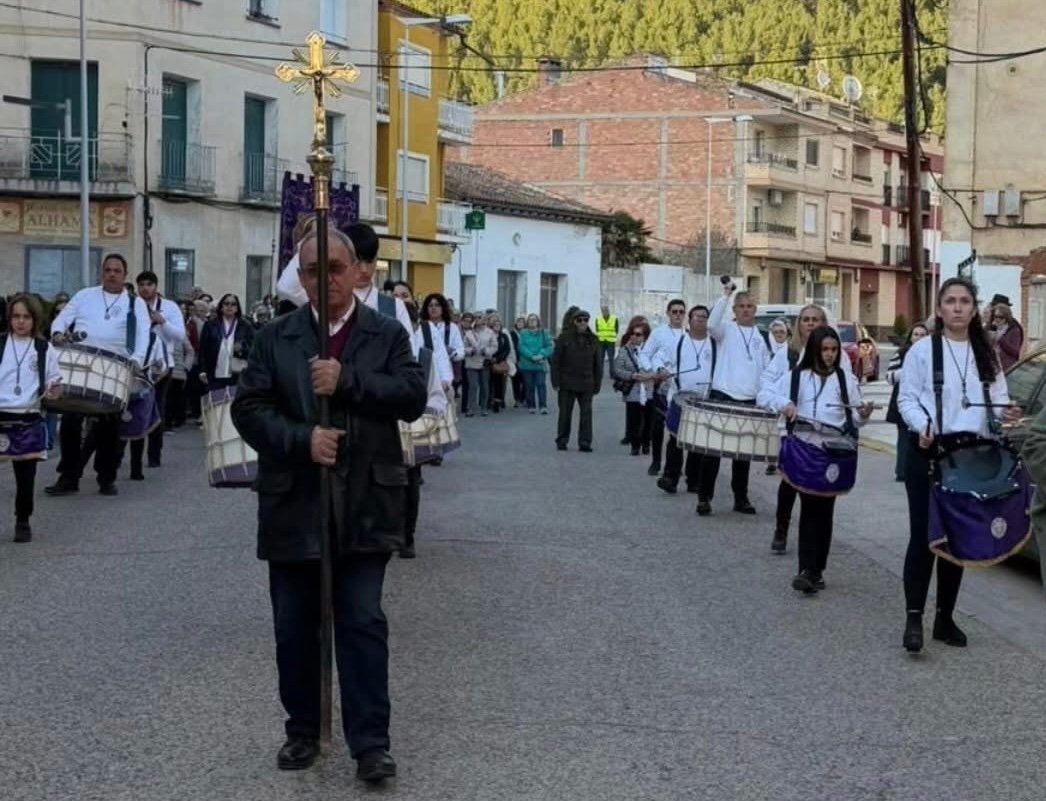 La solemnidad de la jornada estuvo acompañada por la participación de la Cofradía de Nuestra Señora de los Dolores de Alhama de Aragón. El sonido de los tambores aportó la tradición y el fervor característicos de la Semana Santa en la zona, enriqueciendo espiritualmente el rezo de cada estación y guiando a los asistentes en su camino de fe.