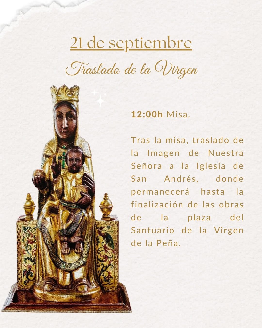 La Virgen de la Peña se trasladará este mismo domingo 21 de septiembre a la Parroquia de San Andrés de Calatayud