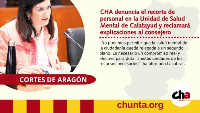 La secretaria general de Chunta Aragonesista y portavoz de los aragonesistad en la Comisión de Sanidad de las Cortes de Aragón, Isabel Lasobras, ha denunciado “el grave recorte de personal en la Unidad de Salud Mental del sector sanitario de Calatayud”. Este viernes, en sesión plenaria, el consejero de Sanidad, José Luis Bancalero, deberá responder sobre esta problemática y explicar las medidas que piensa adoptar el Gobierno de Aragón para garantizar una atención sanitaria de calidad.