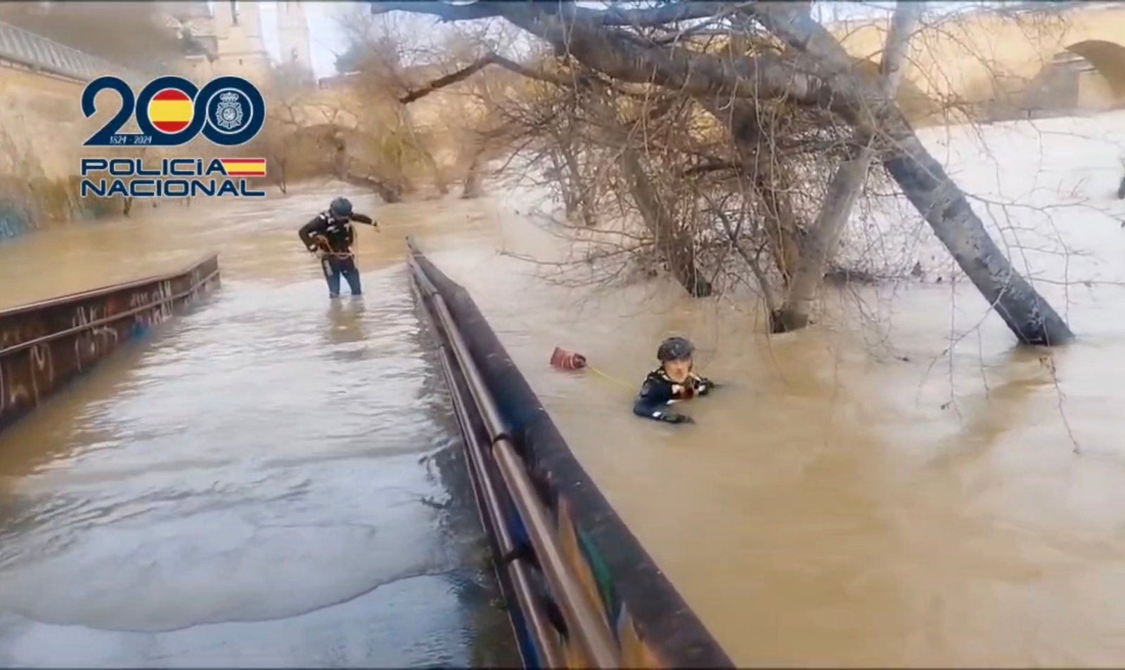 Desde primera hora de esta tarde, el operativo cuenta de nuevo con el despliegue de los agentes especializados en el cauce, quienes trabajan en estrecha coordinación con unidades de apoyo por aire y tierra. El dispositivo de búsqueda sigue reforzado mediante el uso de drones y el helicóptero de la Policía Nacional, medios que permiten ampliar el radio de acción más allá del núcleo urbano y rastrear posibles zonas de arrastre río abajo.