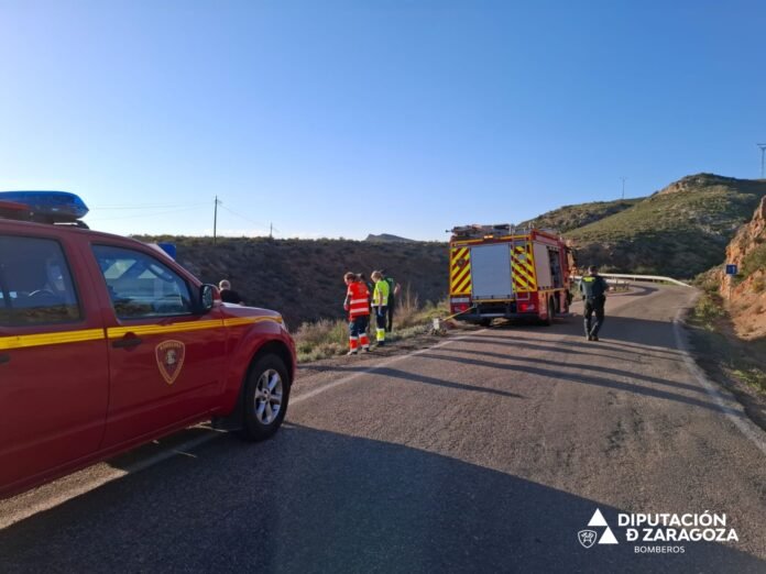 Los bomberos de la Diputación Provincial de Zaragoza han recibido el aviso a las 18:50h y hasta el lugar del accidente se han trasladado efectivos del parque de bomberos de La Almunia de Doña Godina para rescatar al motorista accidentado que ha caído por un barranco.