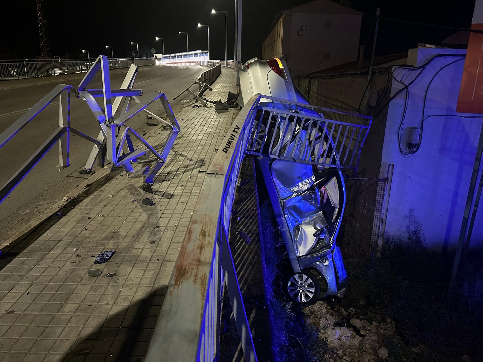Un vehículo se sale de la vía y se precipita en el puente de acceso al Barrio de San Antonio de Calatayud: afortunadamente no hay heridos