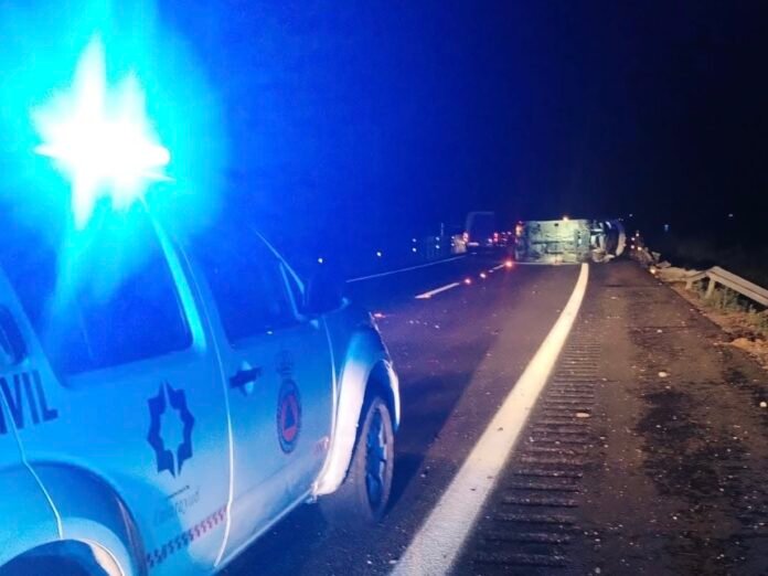Una persona resultó herida esta pasada noche tras volcar su vehículo en el kilómetro 242 de la autovía A-2, en dirección Madrid (término municipal de Calatayud). El incidente, que tuvo lugar a última hora de la noche, movilizó a diversos equipos de emergencia.