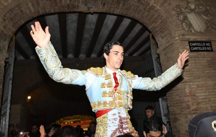 Iker Fernández “El Mene” salía ayer por la puerta grande de la Plaza de Toros de Valencia en el tercer festejo de las Fallas. Segunda novillada con picadores de esta feria taurina.