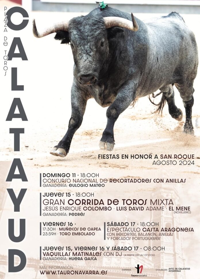 Comienza la cuenta atrás para las Fiestas de San Roque de este 2024. En esta ocasión, del 14 al 17 de agosto, Calatayud volverá a vivir sus fiestas grandes con un sinfín de actividades entre las que se encuentran los actos taurinos.