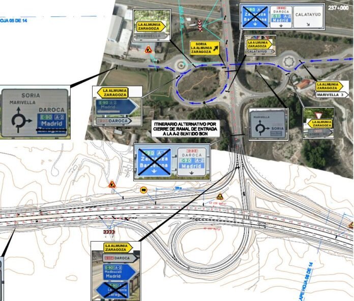 Las tareas de mantenimiento obligarán, en primer lugar, al cierre total del ramal de salida 237 en la calzada creciente de la A-2, es decir, para aquellos vehículos que circulan en sentido Barcelona. Como alternativa para acceder a Calatayud o continuar hacia Soria por la N-234, los usuarios deberán continuar por la autovía hasta la salida 242 (Calatayud/Marivella). Desde ese punto, podrán retomar el trayecto hacia su destino utilizando el trazado de la antigua carretera N-2.