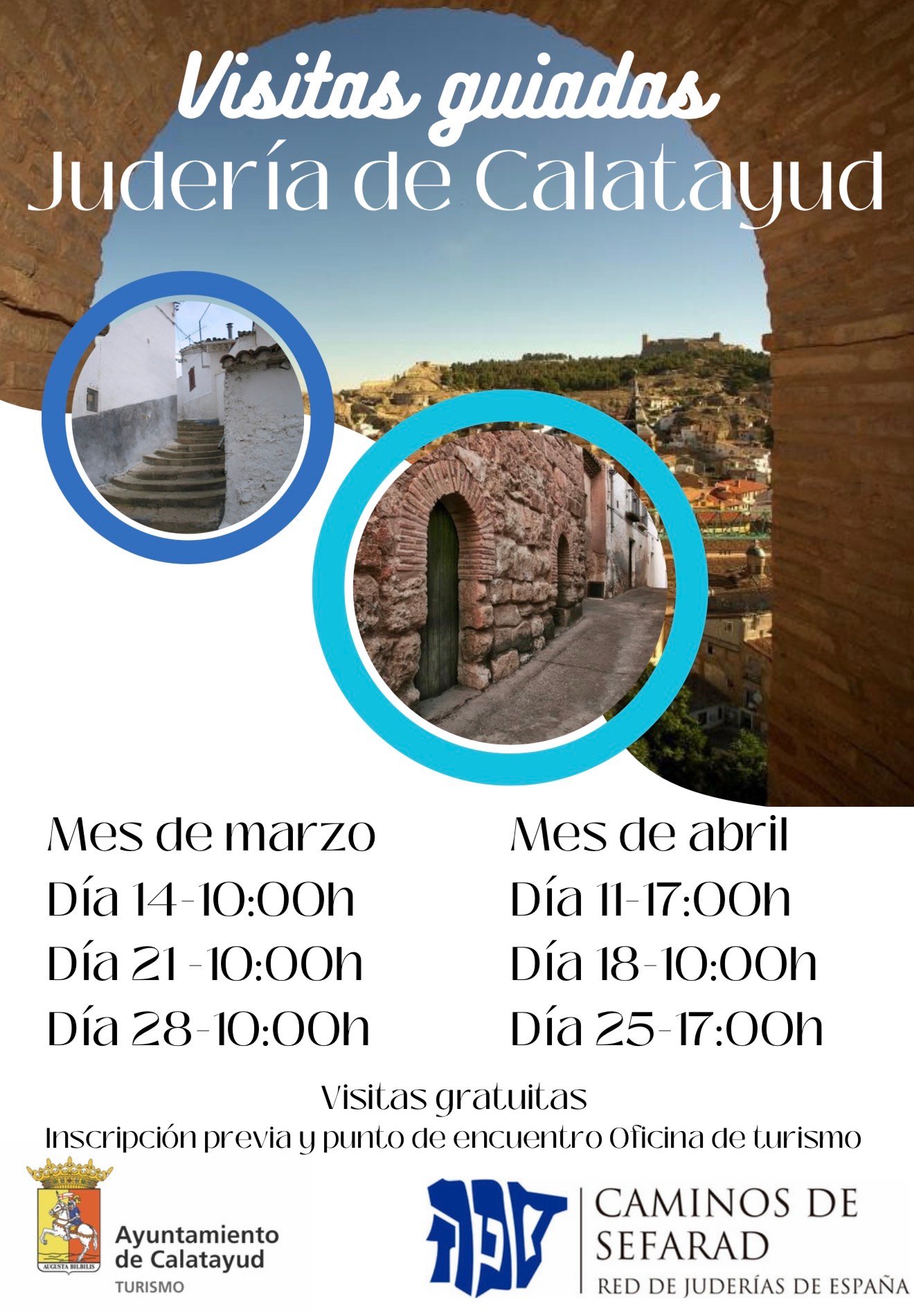 El departamento de Turismo del Ayuntamiento de Calatayud ha programado visitas a la Judería de Calatayud para dar a conocer este barrio bilbilitano. En marzo serán los sábados 14, 21 y 28 a las 10h. Por su parte, en abril serán el 11 y 25 a las 17h y el 18 a las 10h.