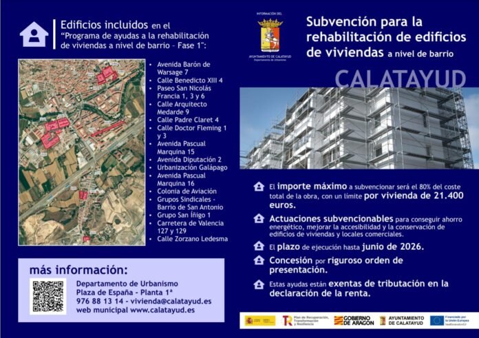 Tal y como recogía el acuerdo firmado el 21 de diciembre de 2023 entre el Ministerio de la vivienda y Agenda Urbana, el Gobierno de Aragón y el Ayuntamiento de Calatayud, el objetivo de estas ayudas es la realización de mejoras en inmuebles con uso predominantemente residencial. También se contemplan para los locales comerciales que pueda haber en esos edificios.
